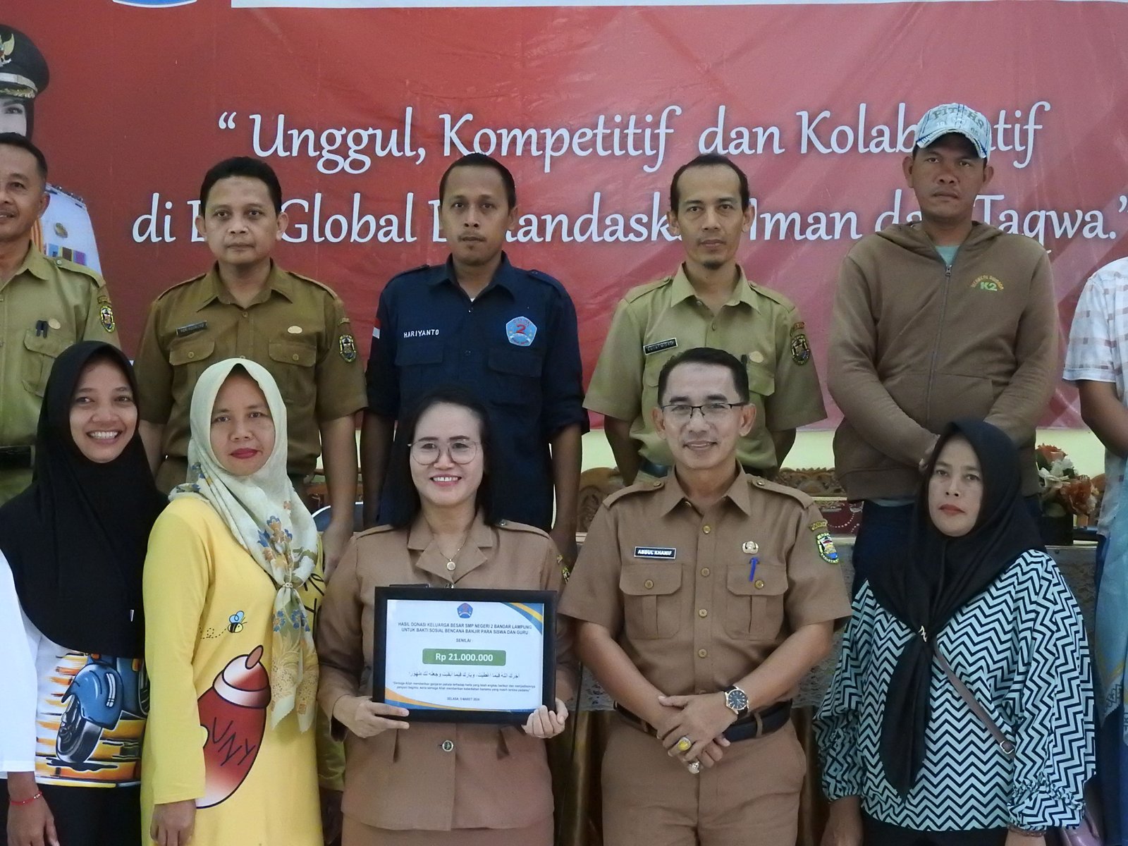 Bandar Lampung, Selasa, 5 Maret 2024, SMPN 2 Bandar Lampung menggelar acara pemberian bantuan sosial bagi korban banjir di kota ini. Acara ini berlangsung di Aula SMPN 2 Bandar Lampung dengan kehadiran kepala sekolah, Abdul Khanif, M.Pd.