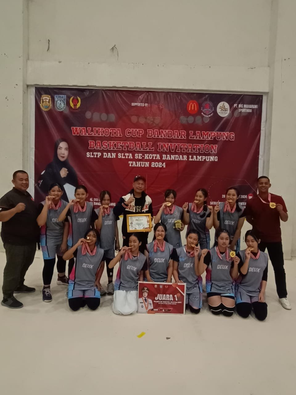 Bandar Lampung, 05 September 2024 – Tim bola basket putri SMP Negeri 2 Bandar Lampung kembali menorehkan prestasi gemilang dengan meraih juara 1 dalam ajang bergengsi Walikota Cup Bandar Lampung Basketball Invitation tingkat SLTP dan SLTA se-Kota Bandar Lampung tahun 2024. Kejuaraan yang diadakan di GOR UIN Lampung ini menjadi saksi atas perjuangan keras para pemain muda berbakat dari berbagai sekolah, namun di final, tim putri SMPN 2 Bandar Lampung berhasil mengungguli SMP Negeri 4 Bandar Lampung dengan skor ketat 19-18.