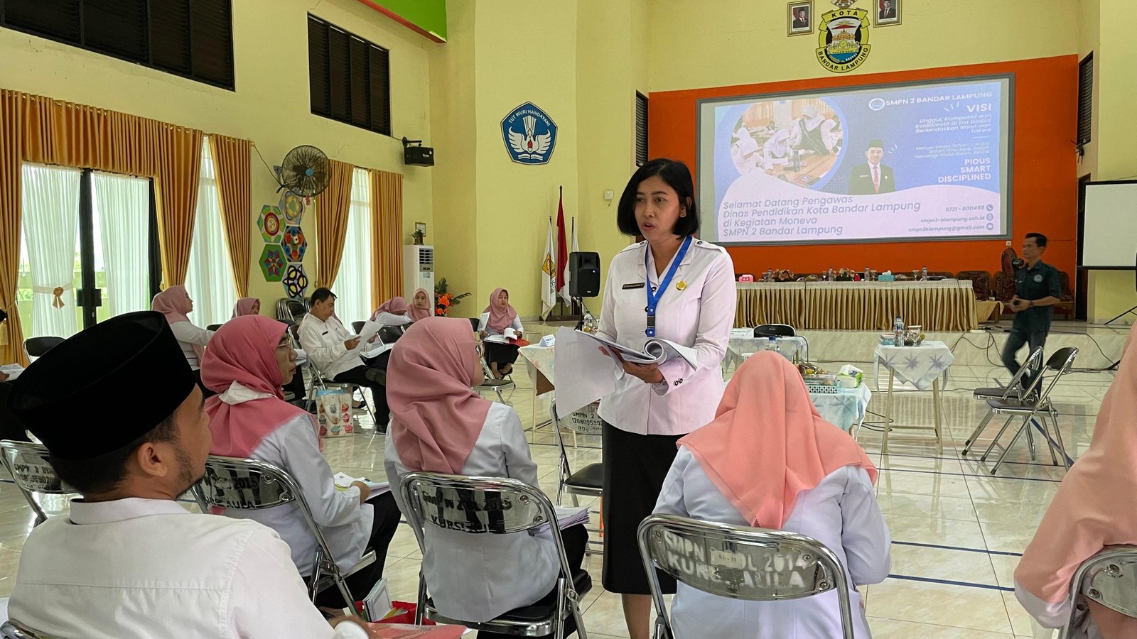 Bandar Lampung, 13 November 2024 – SMP Negeri 2 Bandar Lampung menerima kunjungan dari Pengawas Dinas Pendidikan Kota Bandar Lampung untuk melaksanakan kegiatan Monitoring dan Evaluasi (Moneva). Kegiatan ini bertujuan untuk meninjau dan mengevaluasi pelaksanaan program pendidikan, termasuk implementasi kurikulum, administrasi sekolah, dan berbagai kegiatan pembelajaran di sekolah.