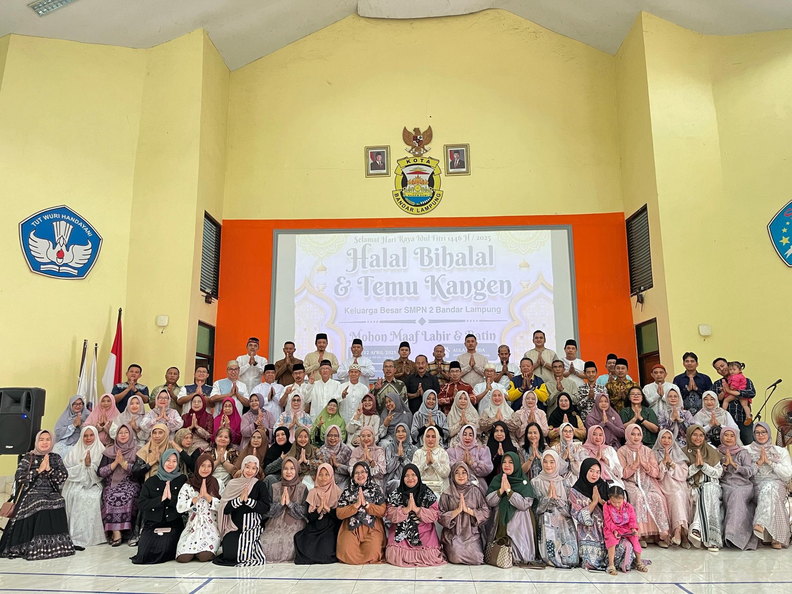 Bandar Lampung, 12 April 2025 – Dalam suasana penuh kehangatan dan kekeluargaan, SMP Negeri 2 Bandar Lampung menggelar acara Halal Bihalal dan Temu Kangen pada hari Sabtu, 12 April 2025. Kegiatan ini dilangsungkan di Aula SMPN 2 Bandar Lampung dan dihadiri oleh seluruh guru dan tenaga kependidikan aktif, serta para guru dan staf yang telah purna tugas maupun pindah tugas.
