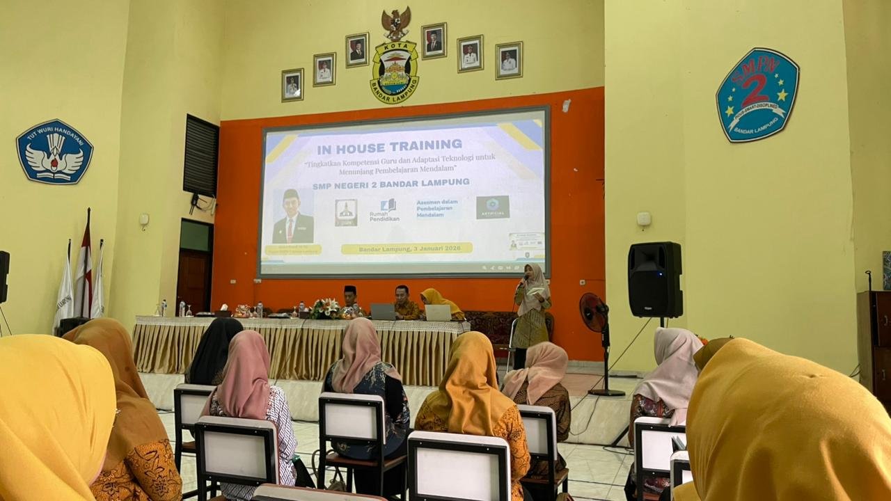 Bandar Lampung – SMP Negeri 2 Bandar Lampung kembali menunjukkan komitmennya dalam meningkatkan mutu pendidikan melalui kegiatan In House Training (IHT) bertajuk “Tingkatkan Kompetensi Guru dan Adaptasi Teknologi untuk Menunjang Pembelajaran Mendalam”, yang dilaksanakan pada Jumat, 3 Januari 2025.
